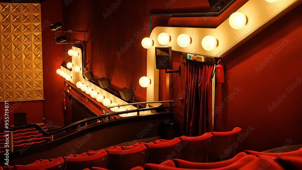Tableau sur toile Rows Of Red Seats Are Illuminated By Lights In An Empty Theater Or Cinema
