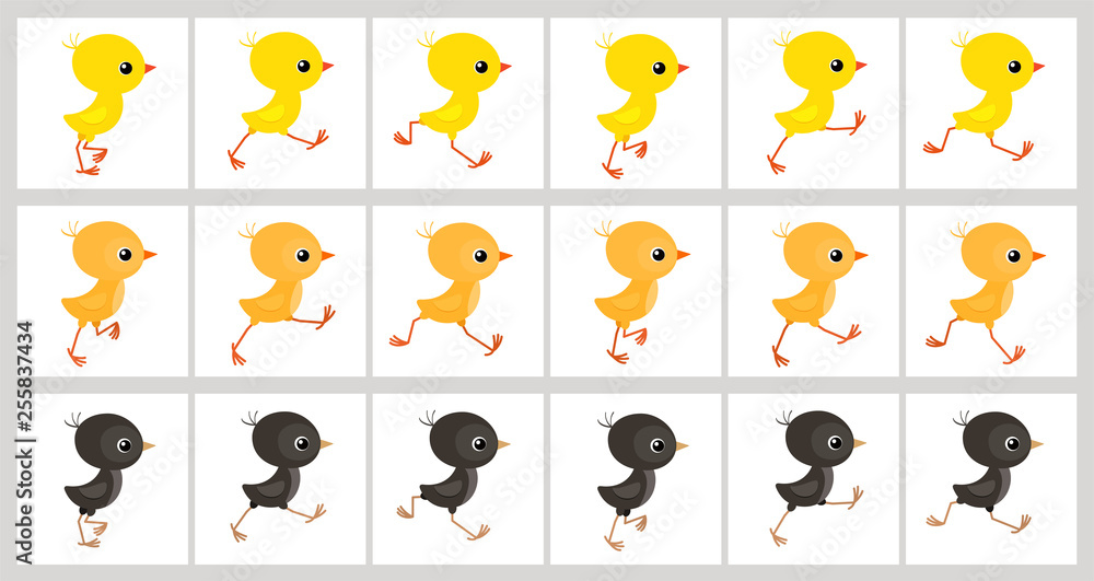 Photos Running colorful chickens animation sprite sheet isolated on white background