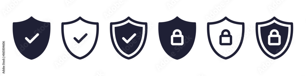 Photos Security shield icons, security shields logotypes with check mark and padlock
