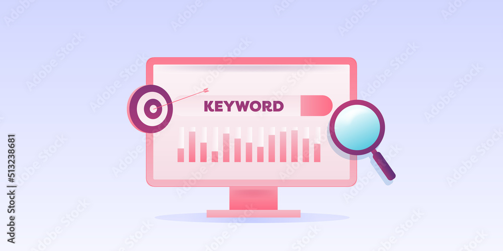 Tableau sur toile SEO keyword research, selection and competitor analysis conceptual 3d style web banner template