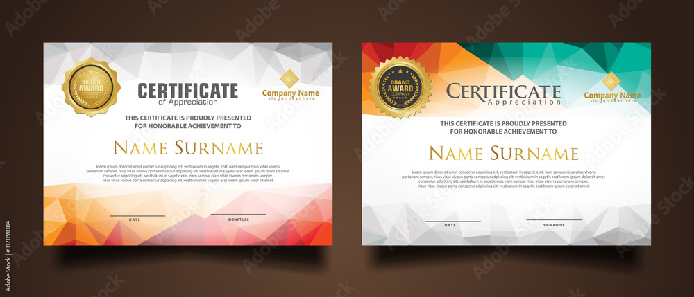 Tableau sur toile Set certificate template with dynamic and futuristic polygonal color and modern background