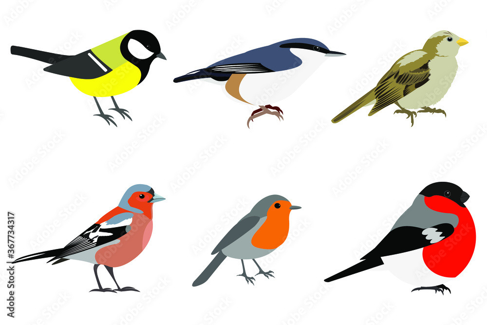 Tableau sur toile Set of birds: Sparrow, Chaffinch, bullfinch, great tit, nuthatch, robin vector
