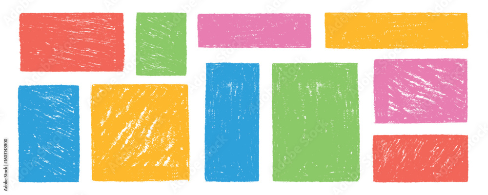 Photos Set of colorful square and rectangle text boxes with rough crayon texture