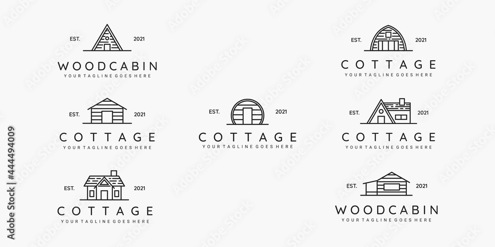 Photos Set of cottage line art minimalist logo vector illustration design