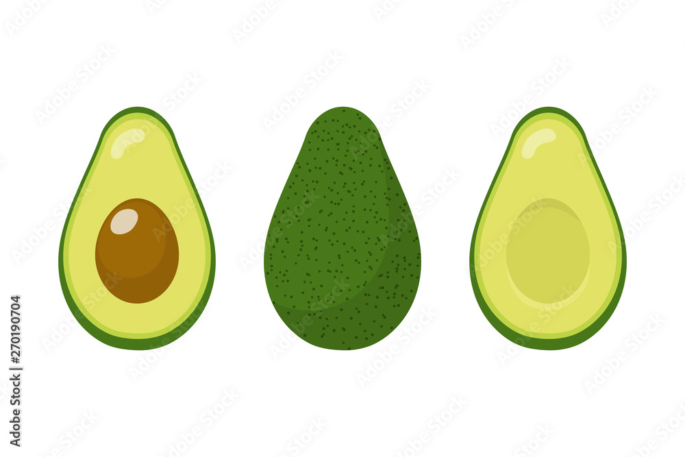 Tableau sur toile Set of fresh whole and half avocado isolated on white background