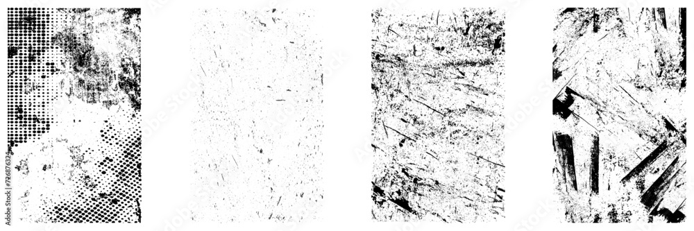 Photos Set of Grunge Distress Vector Textures - Black and White Backgrounds with Splatter, Scratch and Stain Effects