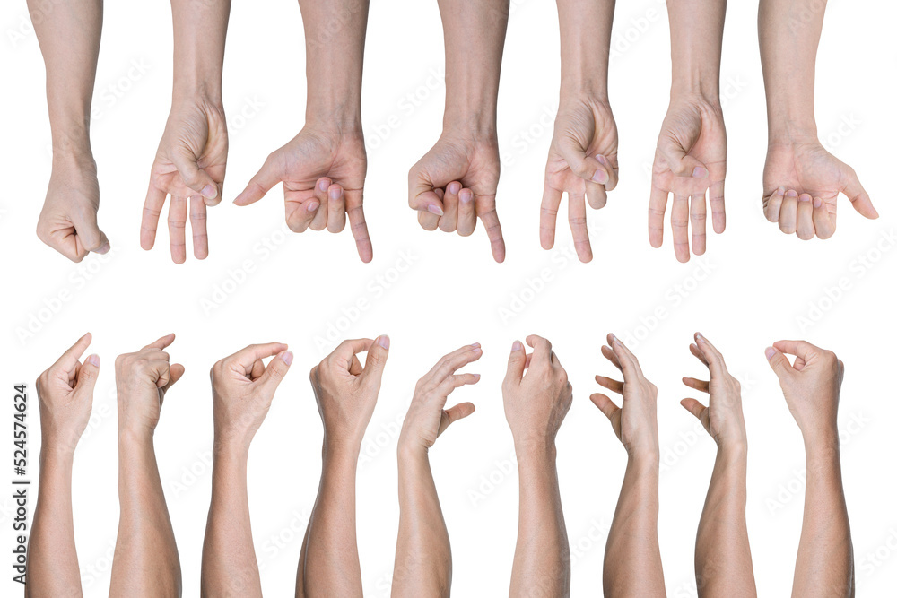 Photos Set of Man hand gestures isolated on transparent background - PNG format