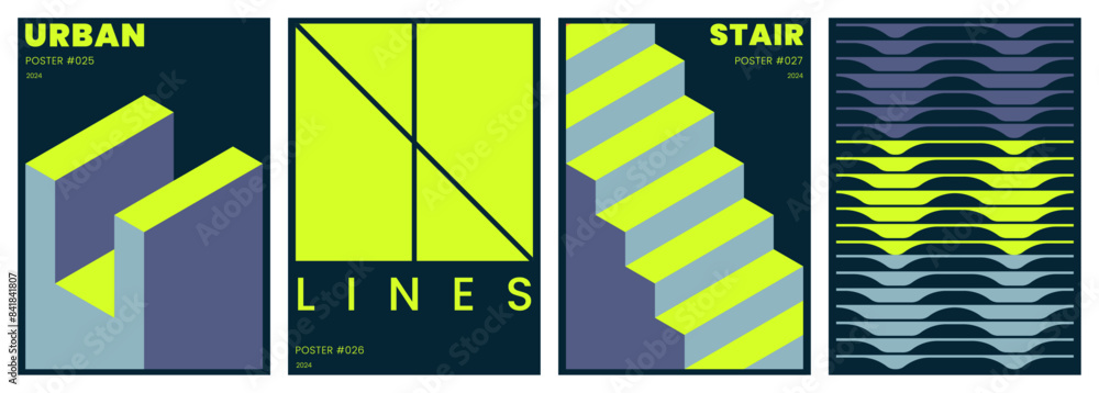 Photos Set of modern graphic designs with abstract and architectural elements for cover