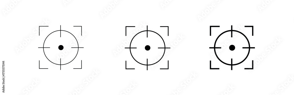 Photos Set of three simple black and white crosshair icons featuring a central dot and