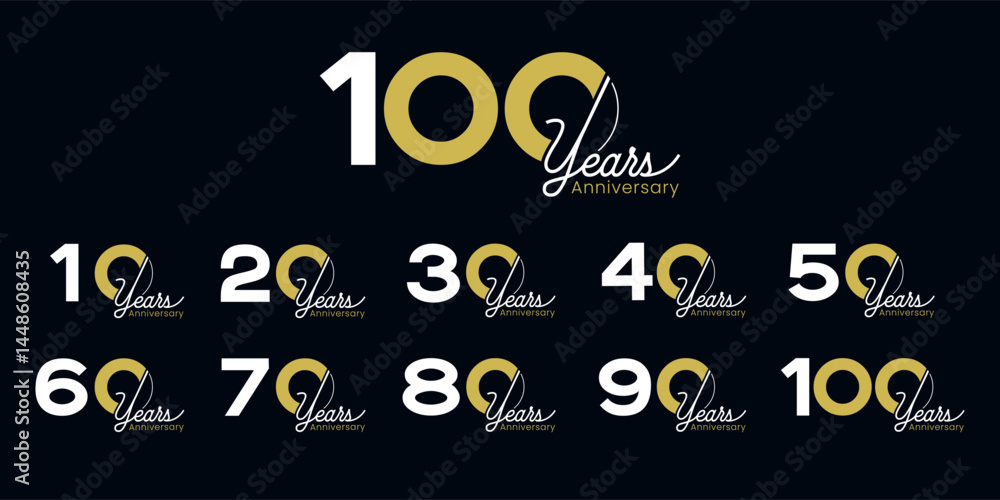Tableau sur toile Set of vector logo designs for 10th to 100th anniversary, in gold color for cele