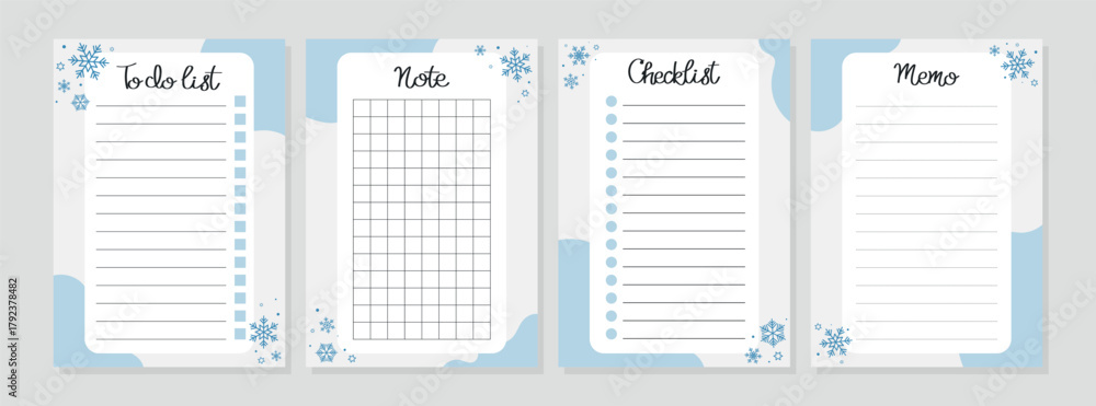 Photos Set of winter to do list, note, memo, checklist with snowflake pattern