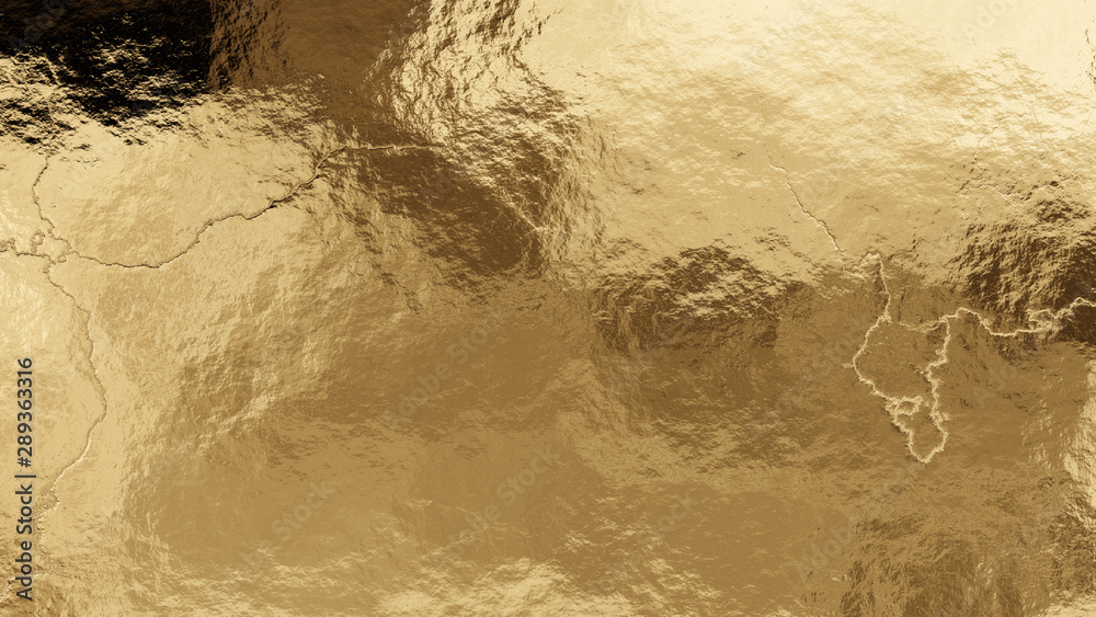 Tableau sur toile Shiny wrinkled golden foil texture. Crumpled metal background.