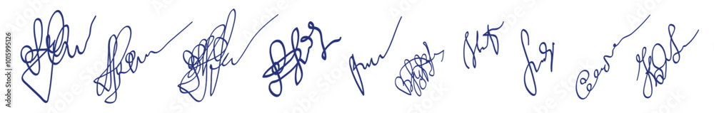 Signature or facsimile scribble sketch. Hand drawn blue pen or marker drawing. Primitive kids picture