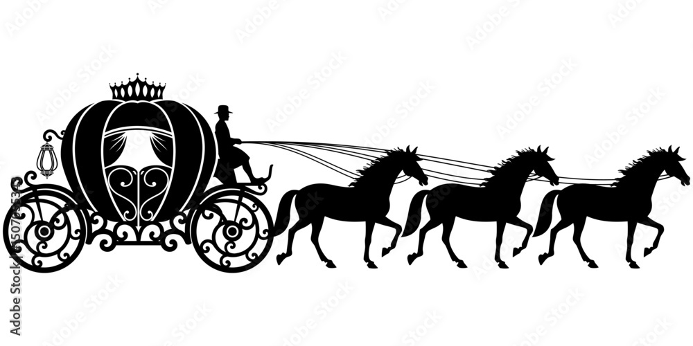 Tableau sur toile Silhouette illustration of a pumpkin-shaped carriage with three horses