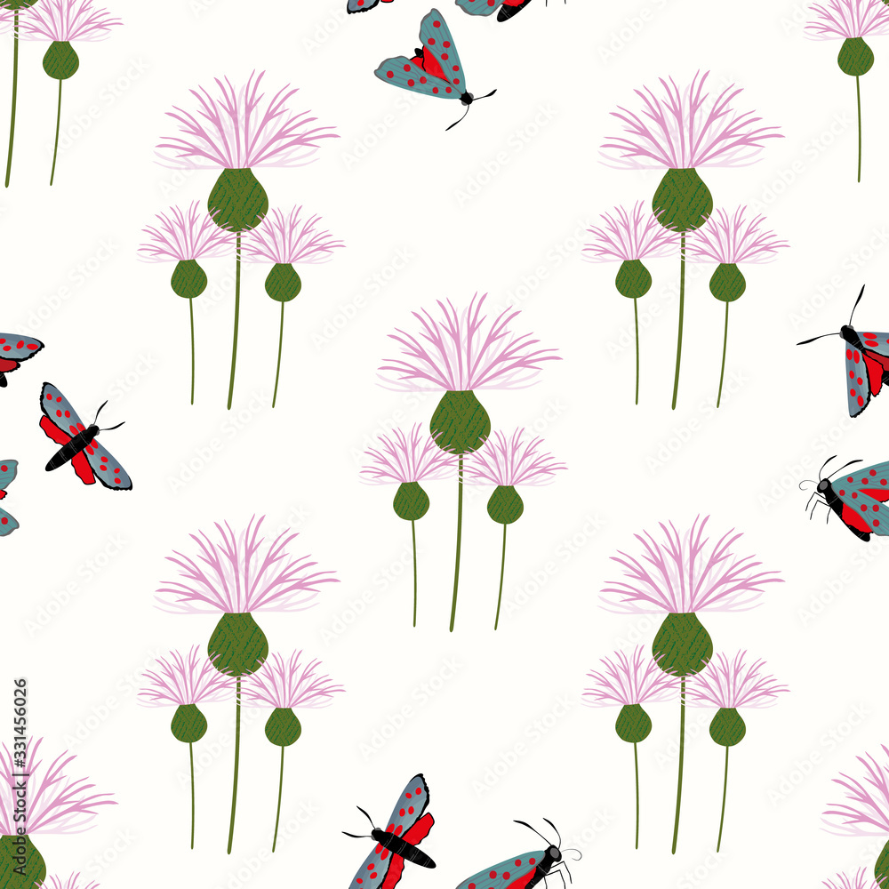 Tableau sur toile Six spot burnet butterfly seamless vector pattern background