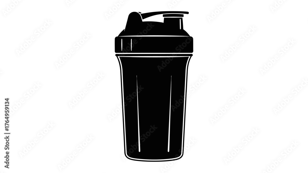 Photos Sleek Protein Shaker: A minimalistic rendering of a black protein shaker bottle, designed for fitness enthusiasts and health-conscious individuals, showcasing its clean lines and ergonomic form