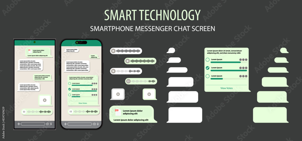 Tableau sur toile Smartphone and Messenger UI Template, Social Communication and Messengers App in Mobile Communication Illustration