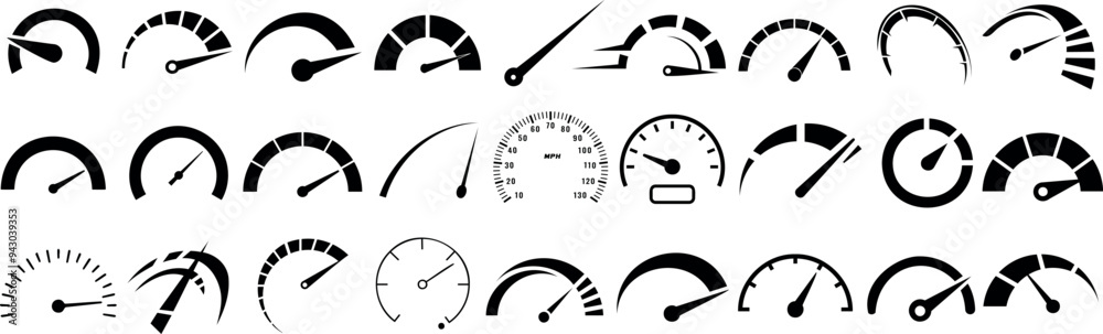 Photos Speedometer speed vector icon set, gauge meter, dashboard elements for automotive, speed measurement