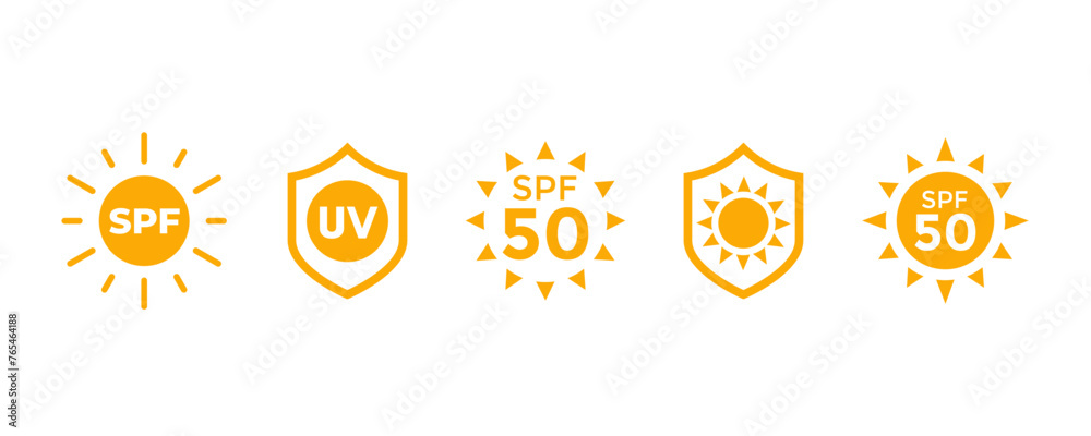 Tableau sur toile SPF, sun block icons, protect from uv radiation vector labels with shield