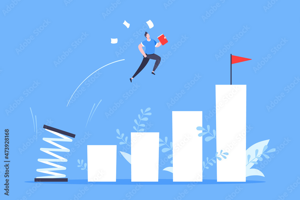 Tableau sur toile Springboard businessman high jump flat style design vector illustration concept