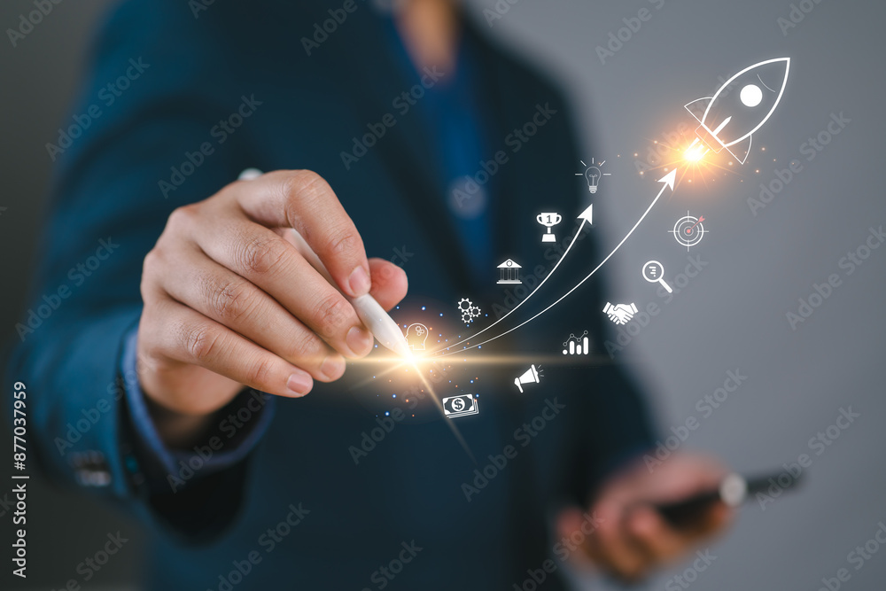 Tableau sur toile Startup business trend growth concept, improve development chart of company