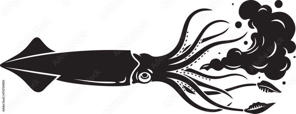Photos Striking silhouette of a squid releasing ink in dynamic motion underwater
