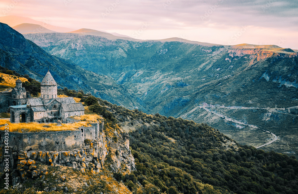 Tableau sur toile Coucher de soleil près du monastère de Tatev, Arménie