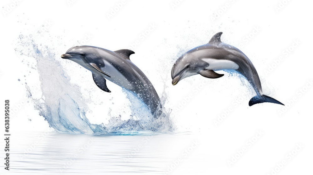 Synchronized dolphins photo realistic illustration - Generative AI.