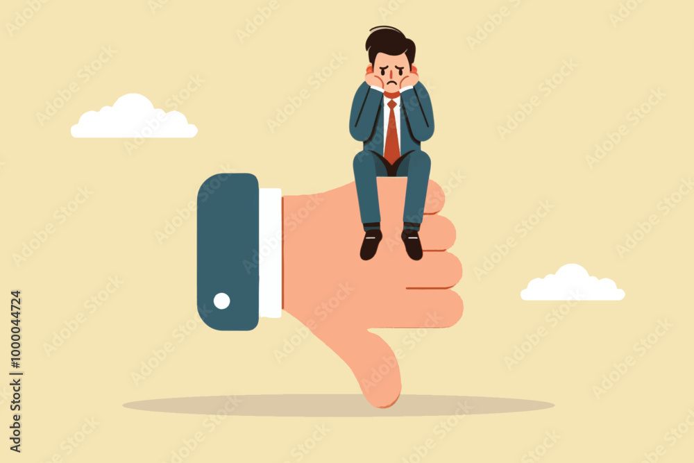 Tableau sur toile a sad businessman sits on his hands as a sign of displeasure