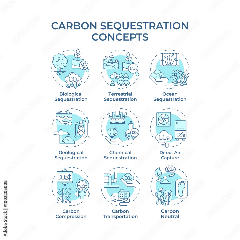 Tableau sur toile Carbon sequestration soft blue concept icons