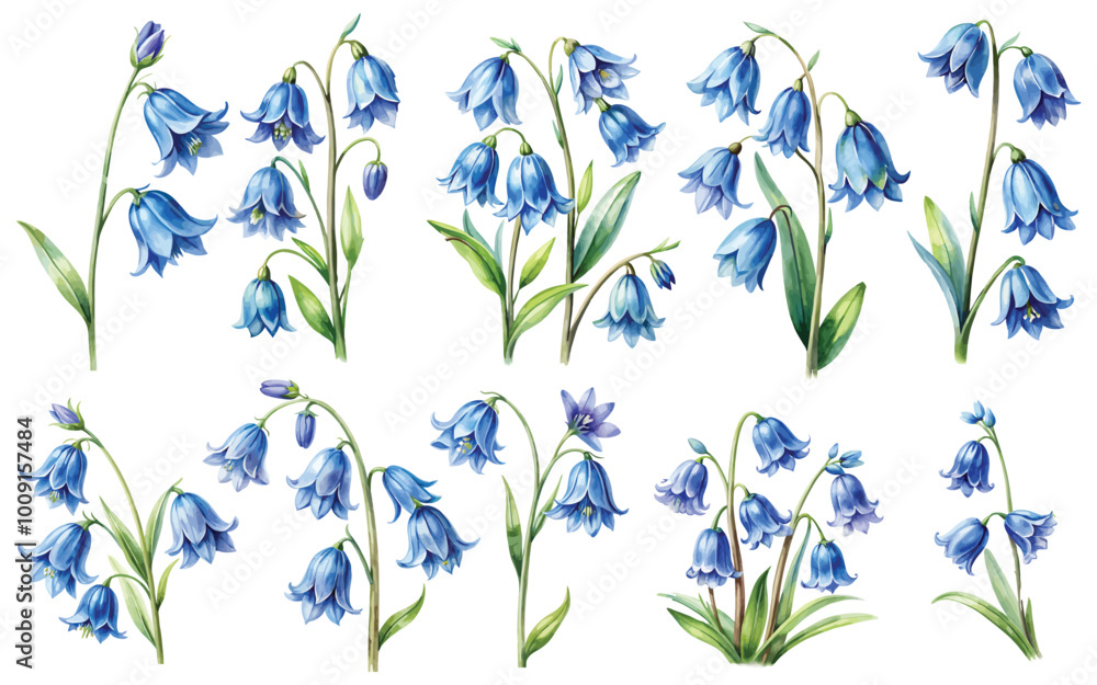 Tableau sur toile bluebell flower watercolor set isolated from white background