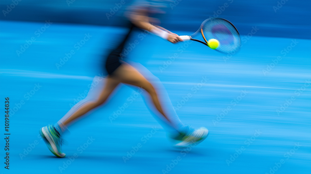 Tableau sur toile Motion blur of a tennis player hitting a ball during a fast game