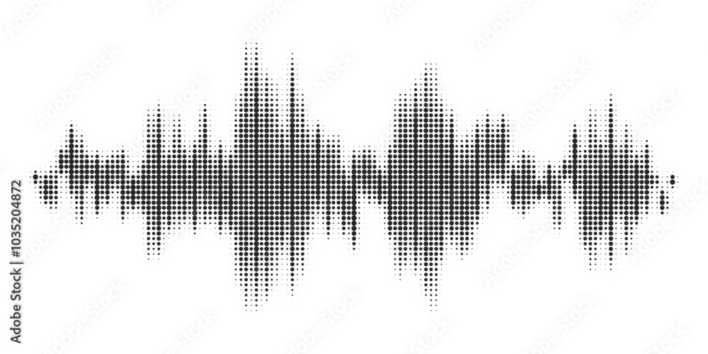 Tableau sur toile Black halftone vector sound waves flow isolated on a white background