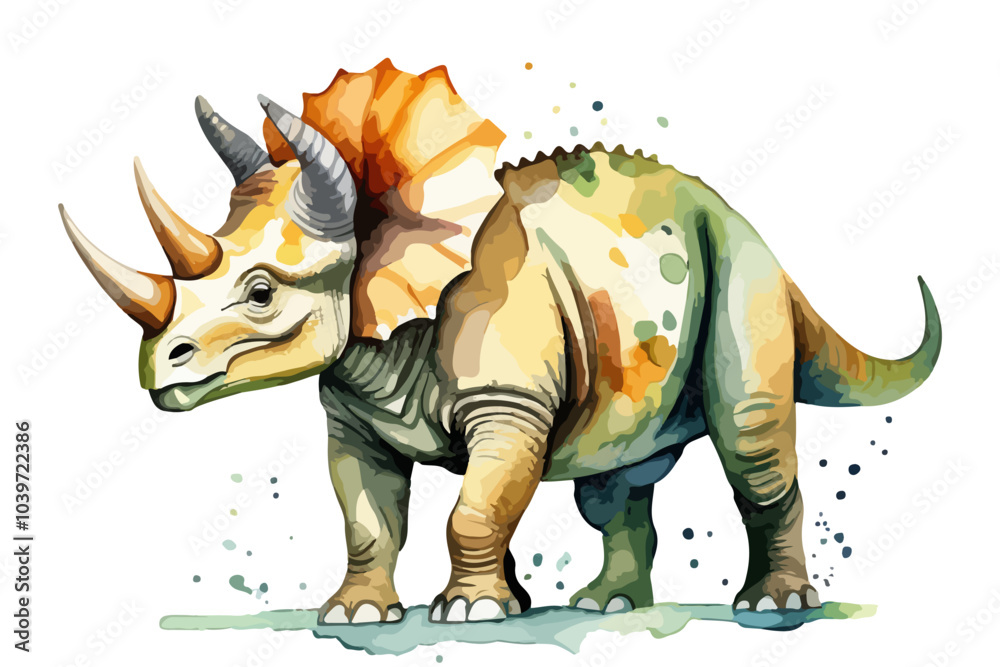 Tableau sur toile Hand drawn watercolor painting of a triceratops dinosaur isolated on a white background