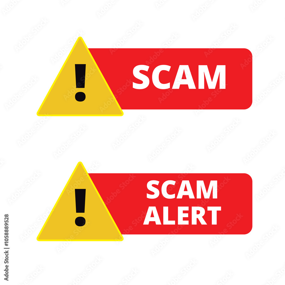 Tableau sur toile Yellow and red scam alert signs on a white background