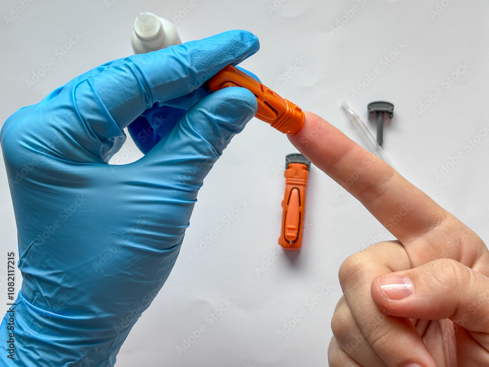 Tableau sur toile medical professional using a lancet to collect a blood sample from the fingertip