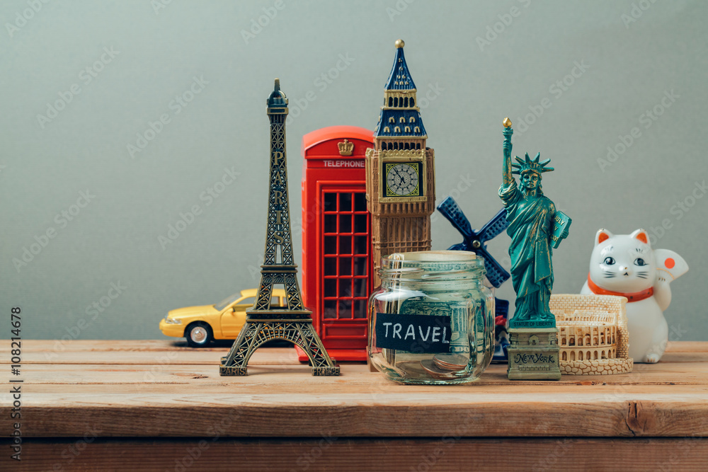Tableau sur toile Travel and tourism concept with souvenirs from around the world