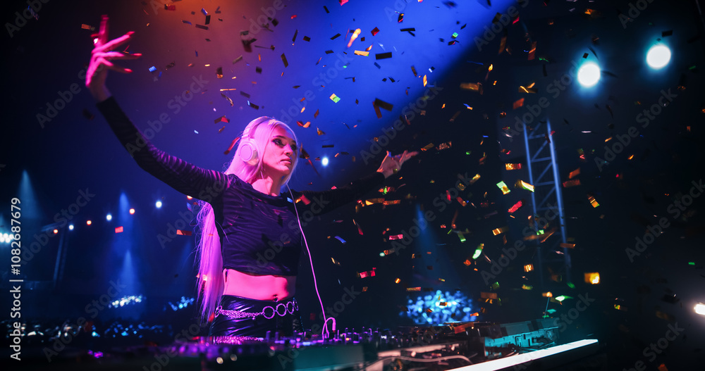Tableau sur toile DJ Mixing Hit Songs on Mixing Decks