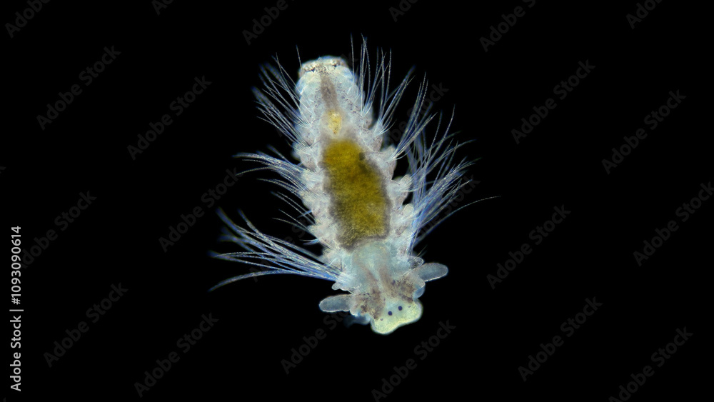 Tableau sur toile Worm larva family Spionidae stage Nektoheta under a microscope, class Polychaeta, have two tentacles that seek prey