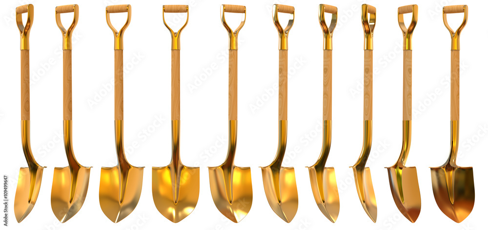 Tableau sur toile Golden shovel set foreshortening 3d illustration
