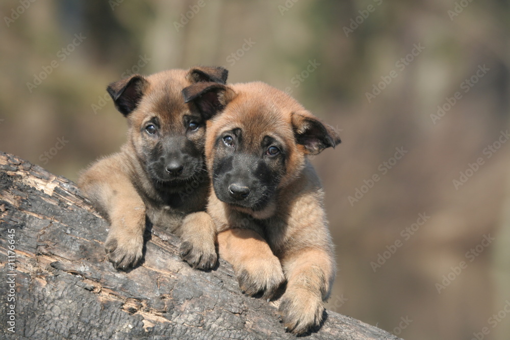 Tableau sur toile frimousse de deux chiots berger belge malinois