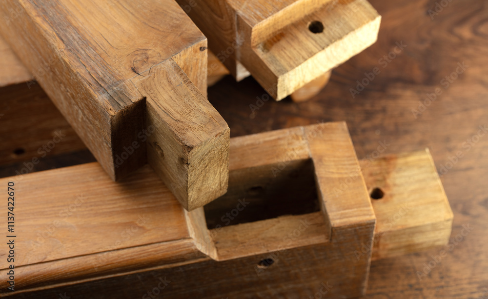 Tableau sur toile Mortise, tenon joints of antique rustic furniture