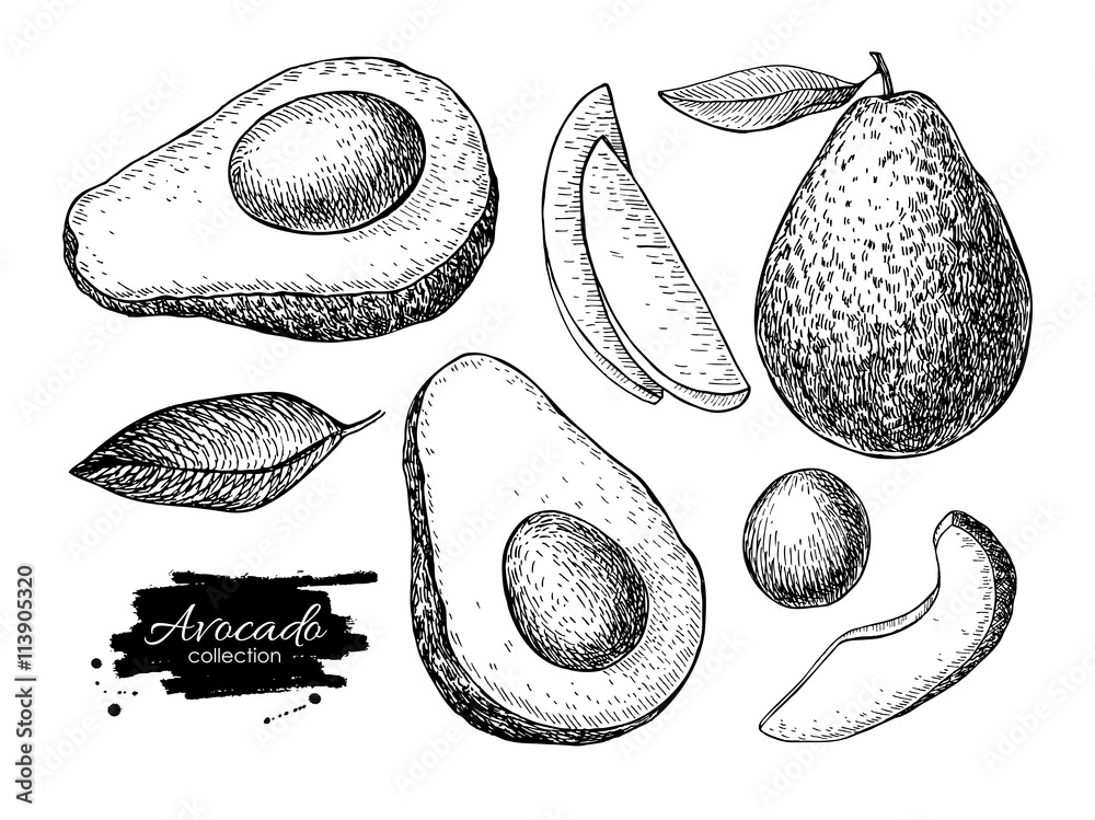 Tableau sur toile Vector hand drawn detailed avocado set. Sketch illustrations
