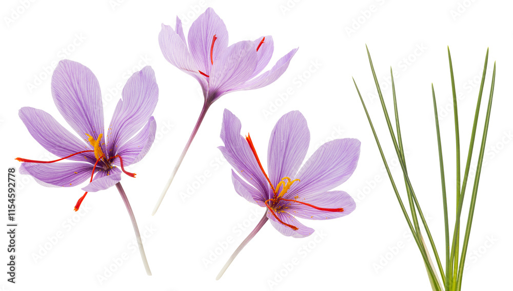 Tableau sur toile saffron crocus or crocus sativus with leaves isolated on white background