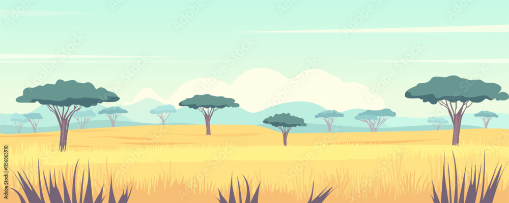 Tableau sur toile Beautiful African landscape of savannah and mountains