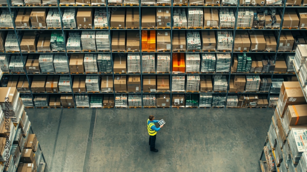 Tableau sur toile Warehouse inventory management industrial facility photography aisle perspective