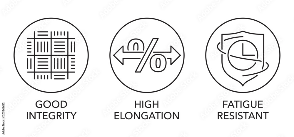 Tableau sur toile Fatigue resistant, Good integrity, High elongation - Aramid fibers benefits icon