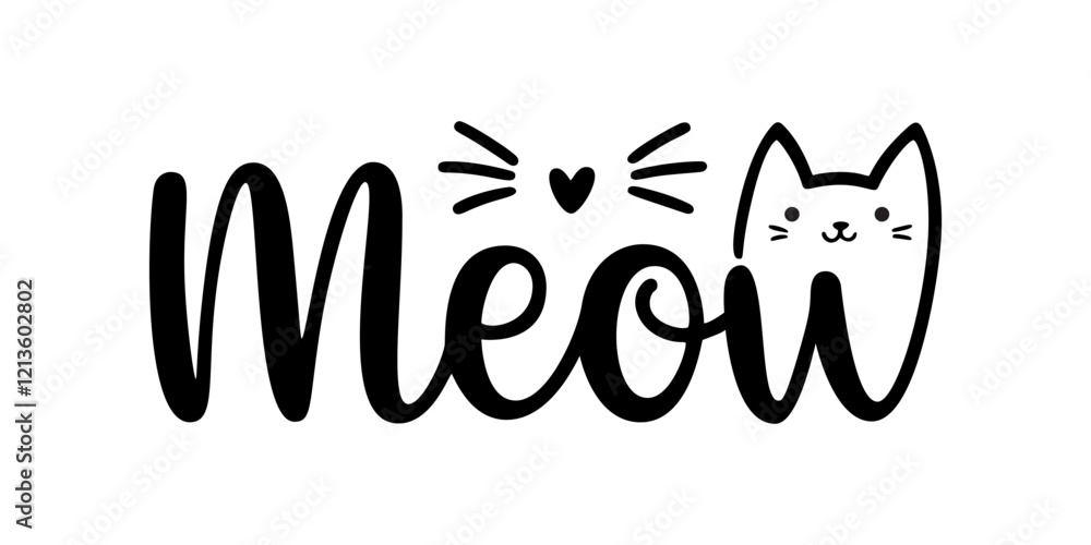Tableau sur toile meow playful lettering, cute hand drawn cat illustration, vector design perfect