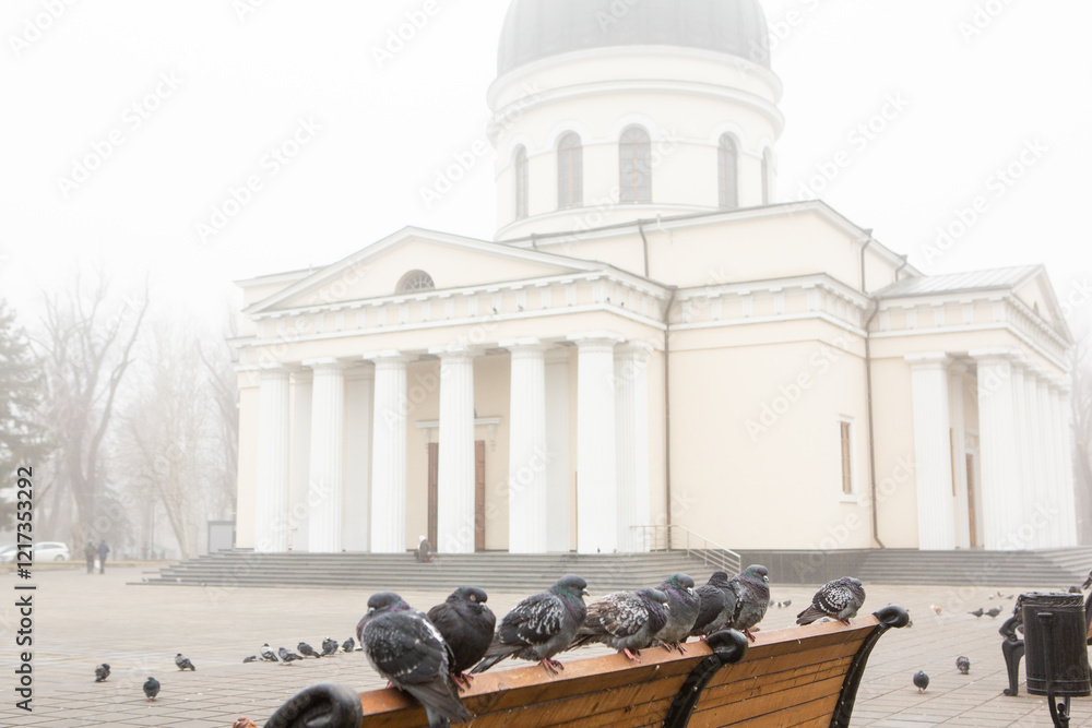 Tableau sur toile Photo of the capital of the Republic of Moldova, Chisinau during the winter fog