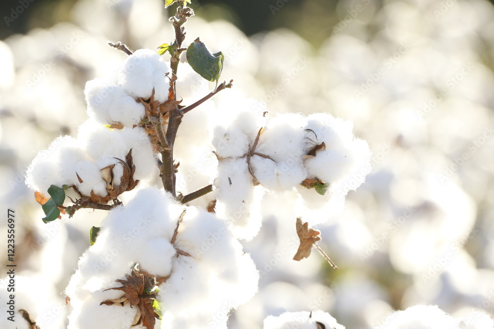 Tableau sur toile Mature cotton crop, with a predominant white color